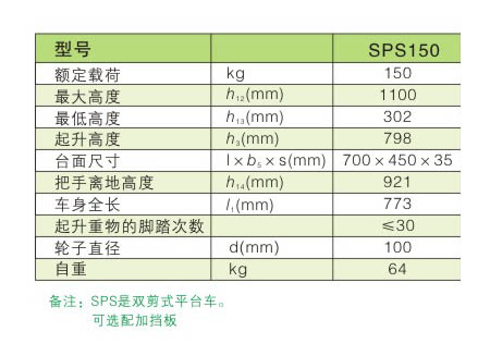 * 表示必填采購:手動平臺車SPS150/350